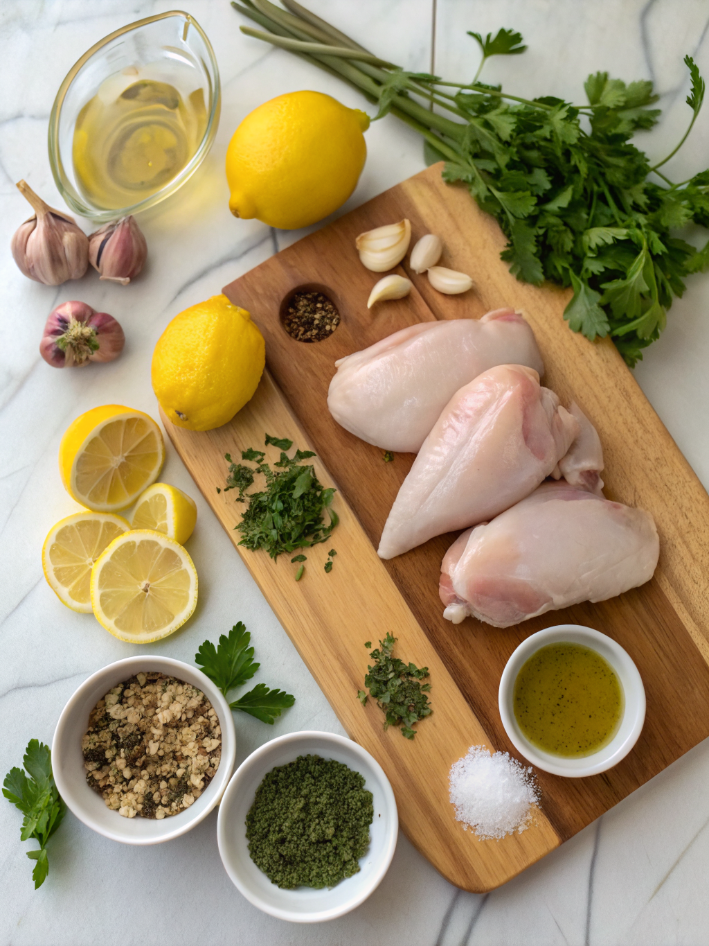 Gathering your ingredients for this Lemon Garlic Chicken Mediterranean Style dish is like collecting jewels from the earth – each one essential for a dazzling culinary experience.