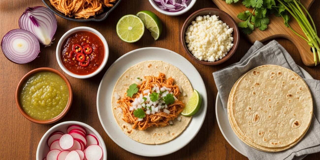 Warm your corn tortillas in a dry skillet over medium heat for about 15-20 seconds per side, or until soft and pliable. A quick char on the edges adds an extra layer of flavor. Serve the warm tortillas piled with the shredded chicken, fresh cilantro, diced white onion, and a squeeze of lime. Don’t forget your favorite salsa and a dollop of fresh guacamole!